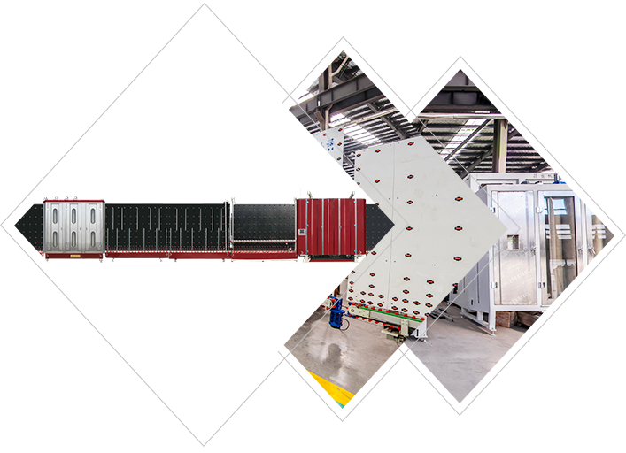 玻璃合片時平壓機前后箱機械手杠桿式托料,(機械式硬限位+活動板吸盤吸附)確保自動合片時玻璃永不錯位。清洗箱 風干箱 風刀等全不銹鋼制作,外形美觀大方,永不銹蝕。